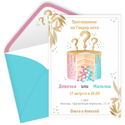 Вместо традиционных бумажных открыток, с помощью JUST INVITE вы можете создать онлайн приглашения на гендер вечеринку для гостей и указать всю необходимую информацию о вашем предстоящем событии: