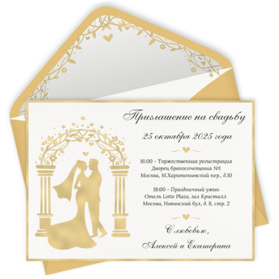 Классические приглашения на свадьбу в золоте онлайн. Посмотреть в каталоге