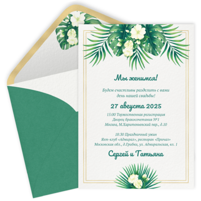 Онлайн пригласительные на свадьбу в тропическом стиле. Посмотреть в каталоге
